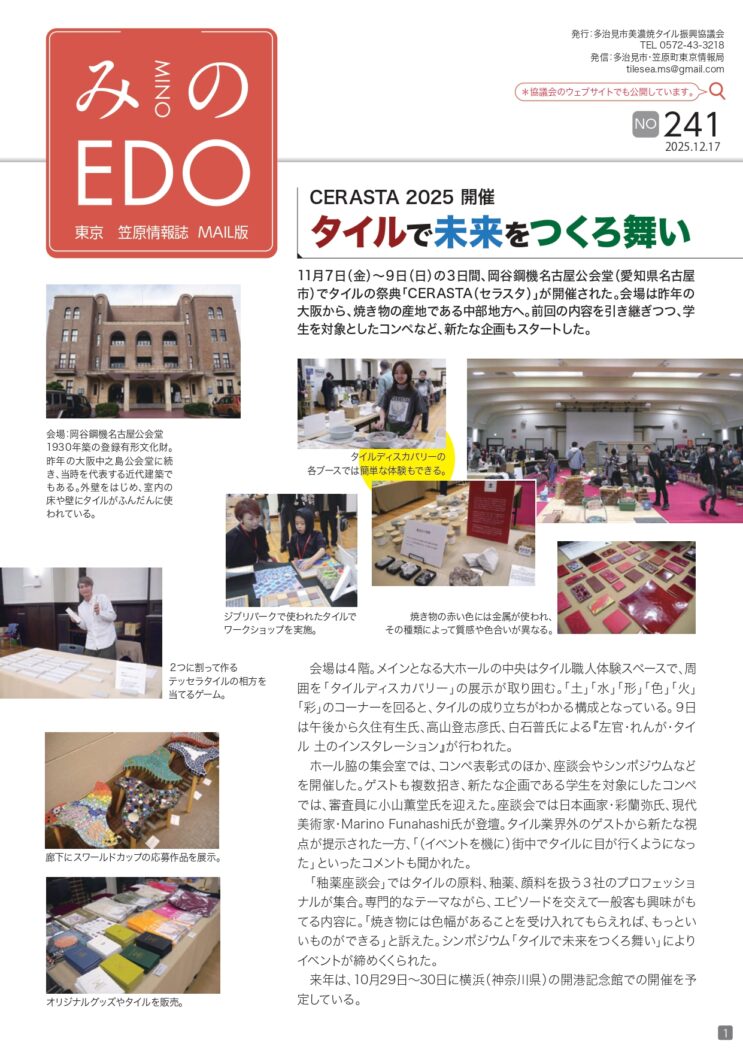 「みのEDO」は、タイルのまち・笠原の情報から、タイルに関する各地の話題まで幅広く発信する情報誌です。